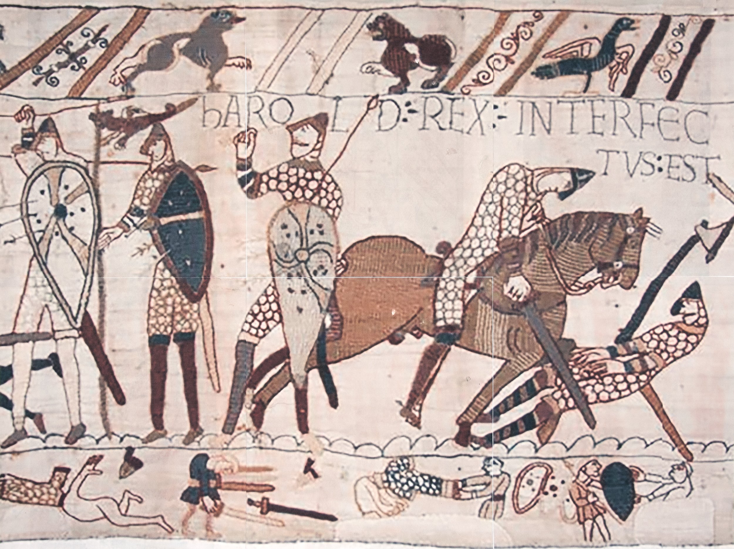 The actual embroidery is over 200 feet long and details events leading up to the invasion. I decided to just use some of the scenes that seemed most prescient and relevant to our current world.