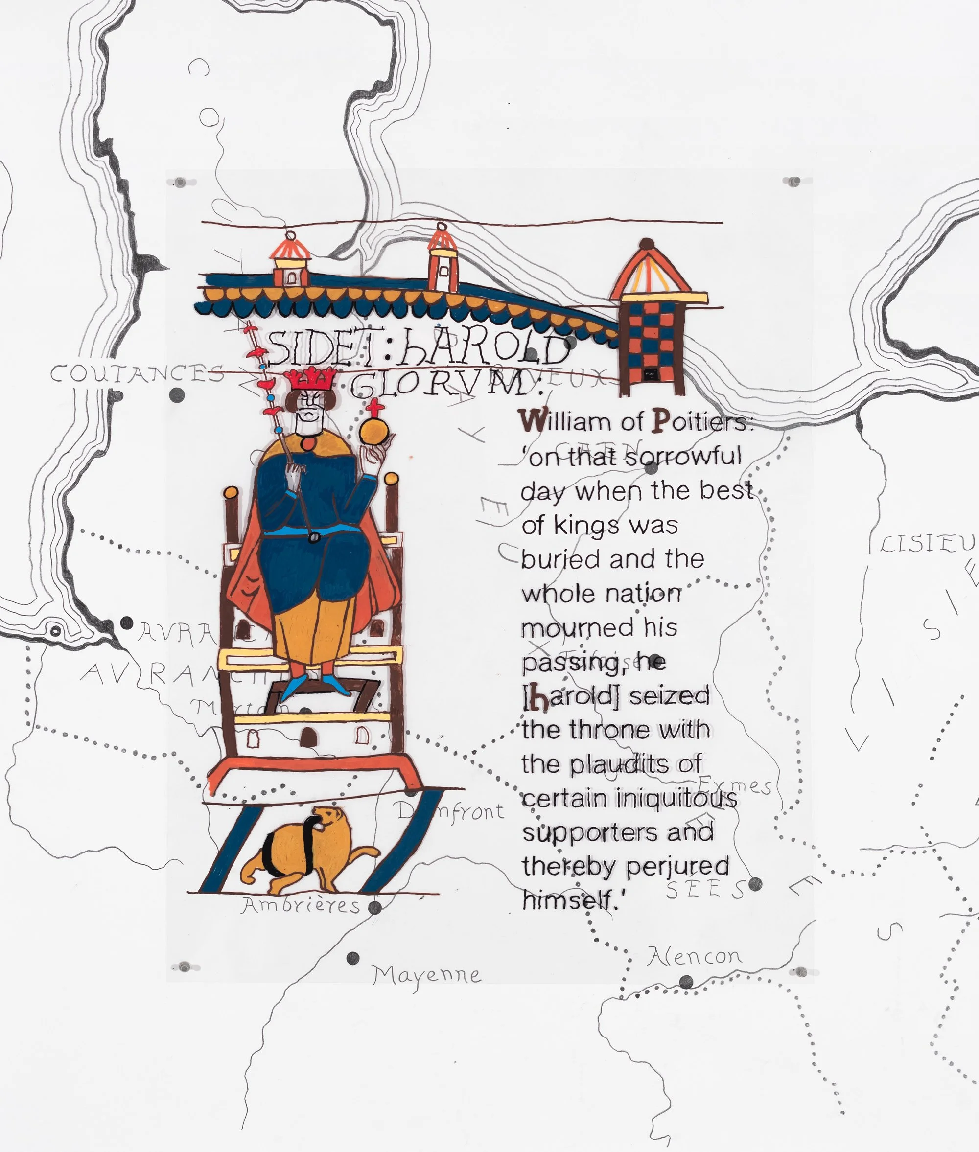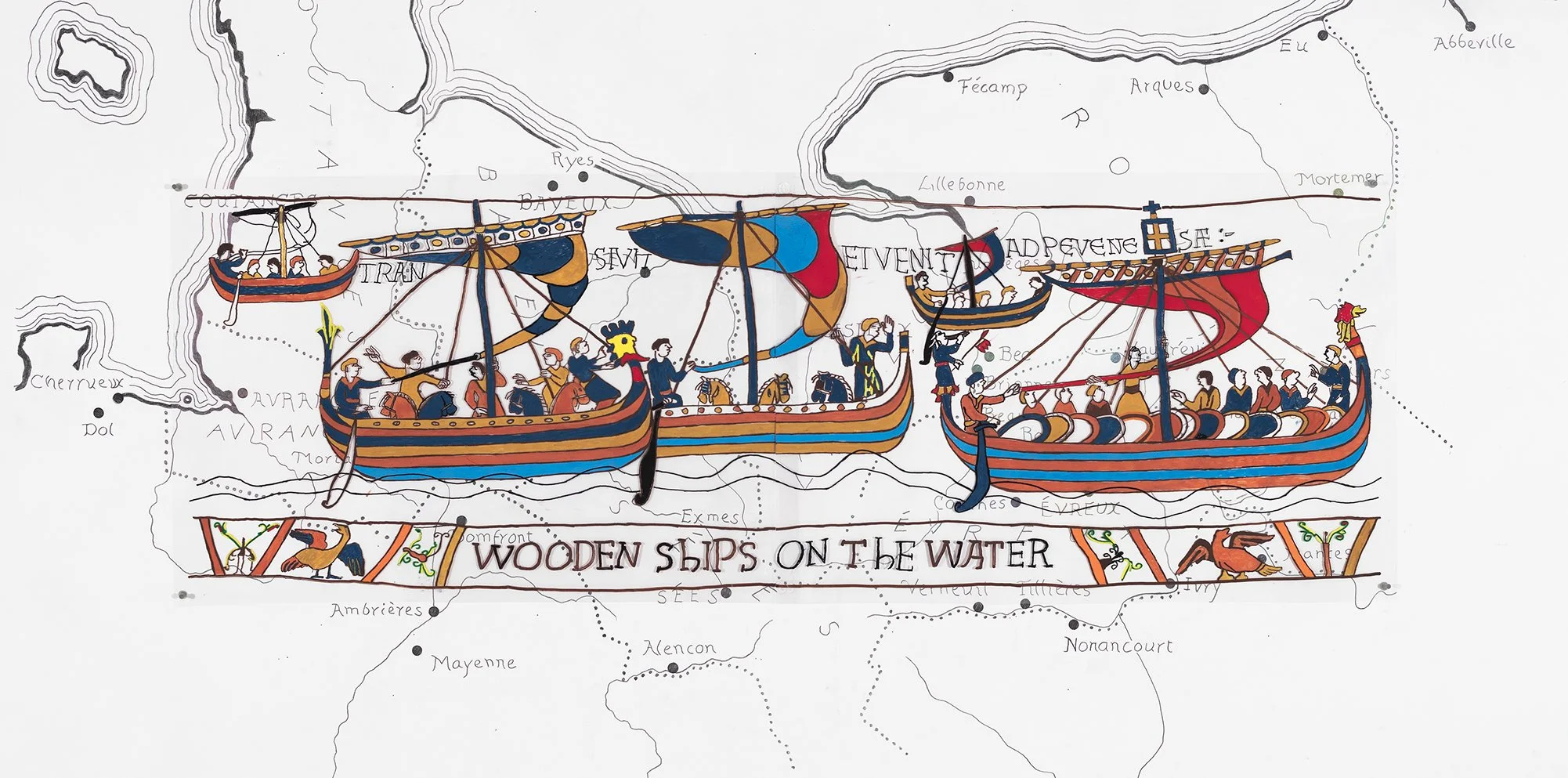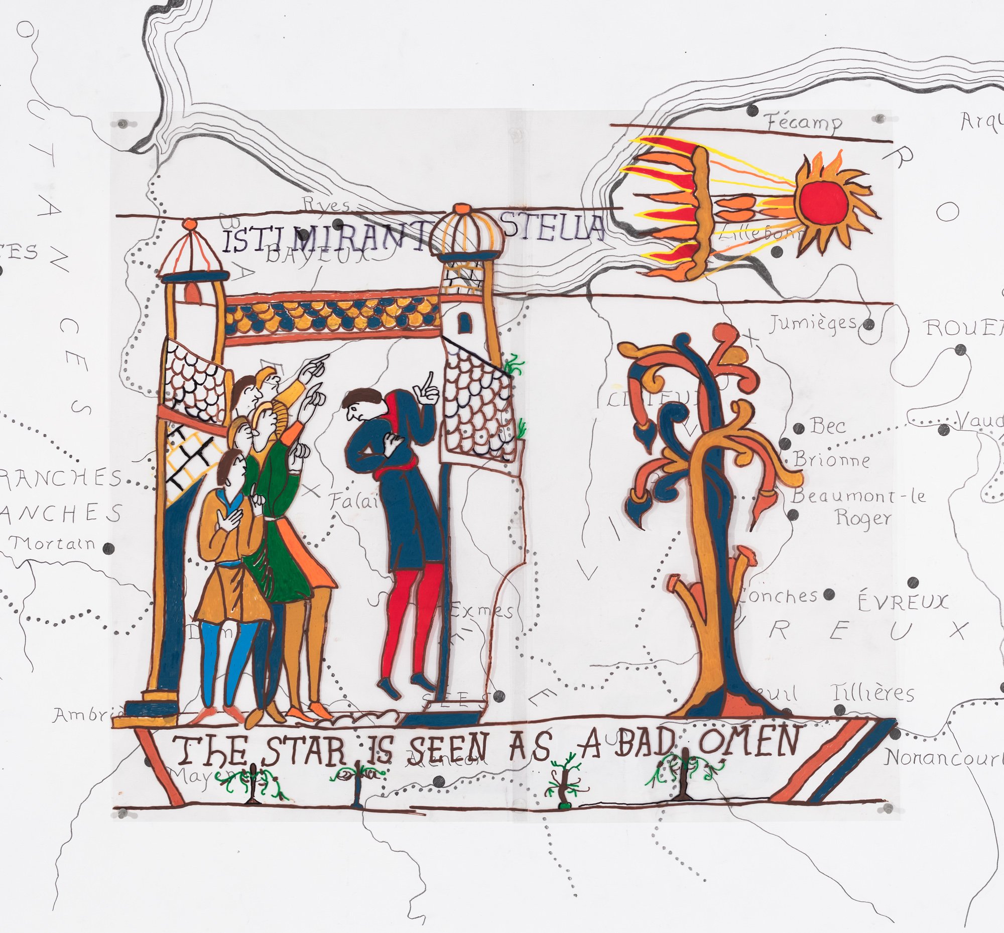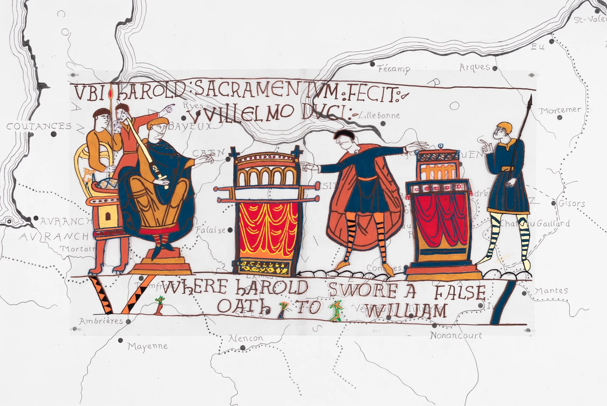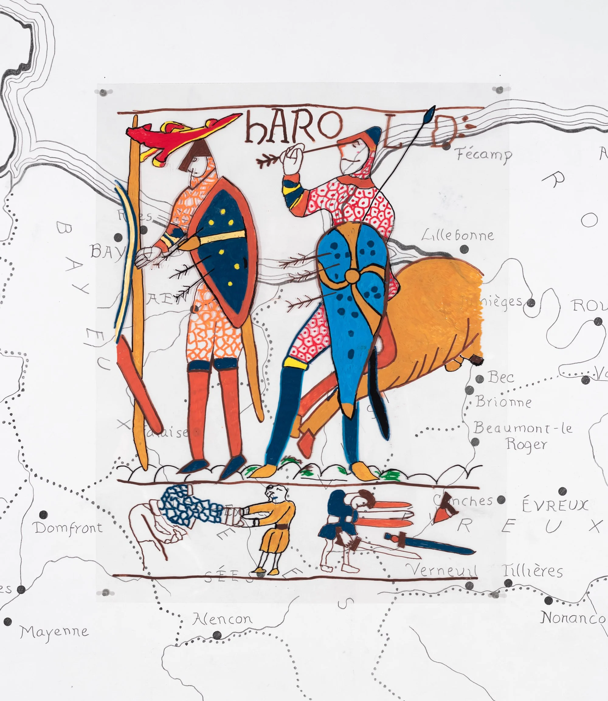 The Bayeux tapestry is an 11th century embroidery, made in England, that documents the events that surround the Norman invasion of England in 1066. As I prepared for a residency at La Maison Dora Maar, Ménerbes, France in 2025, where I made these drawings, I was interested in this artifact. One of the reasons is that it has stunning, if not scary, contemporary relevance, detailing many of the ills that beset the world today; greed, violence, destruction, superstition, corruption and deceit.